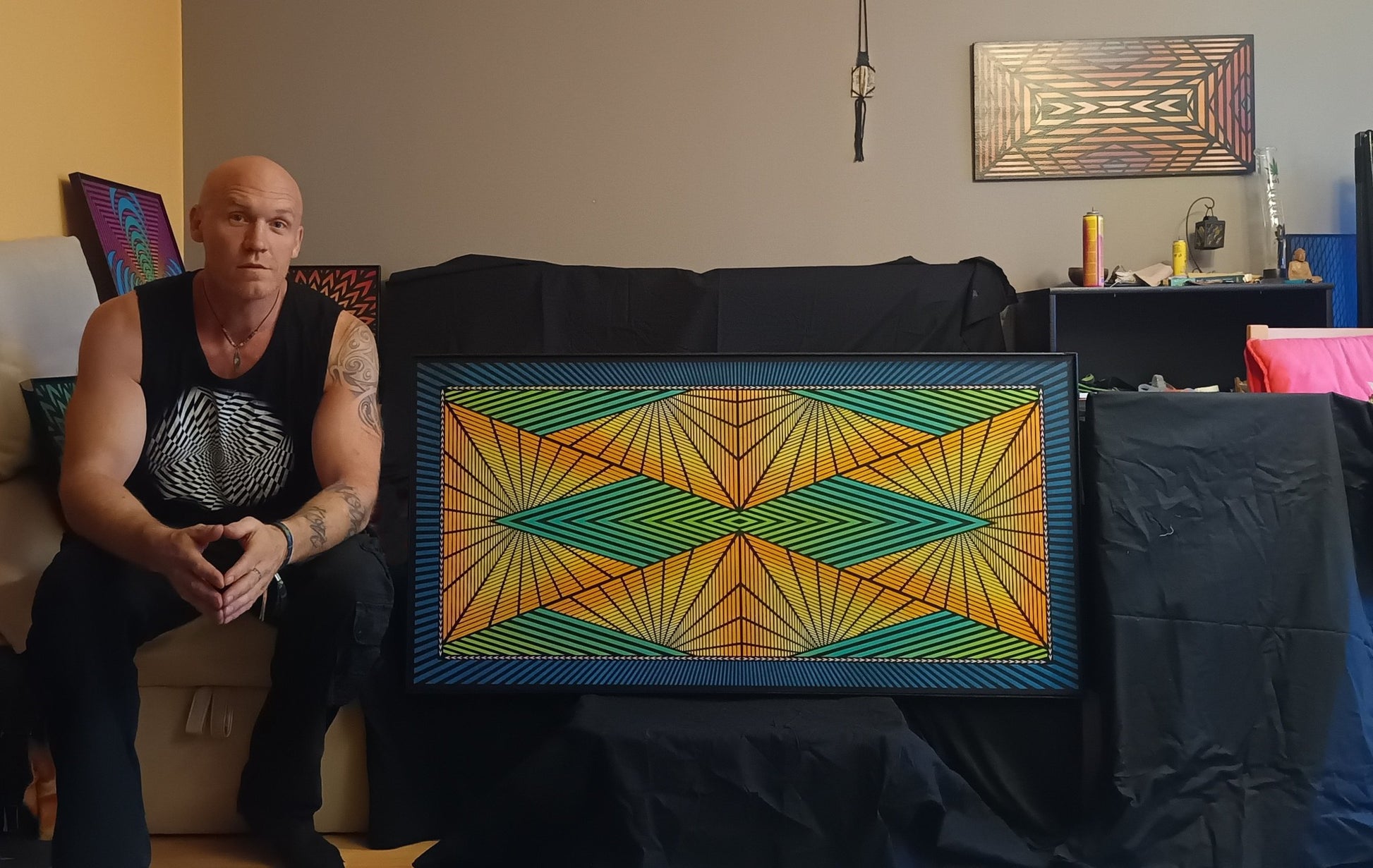 Vstupte do světa, kde barvy ožívají. Obraz je ručně sprejován na dřevěný podklad a doplněn ručně vyráběným rámem - žádný tisk, žádná kopie.